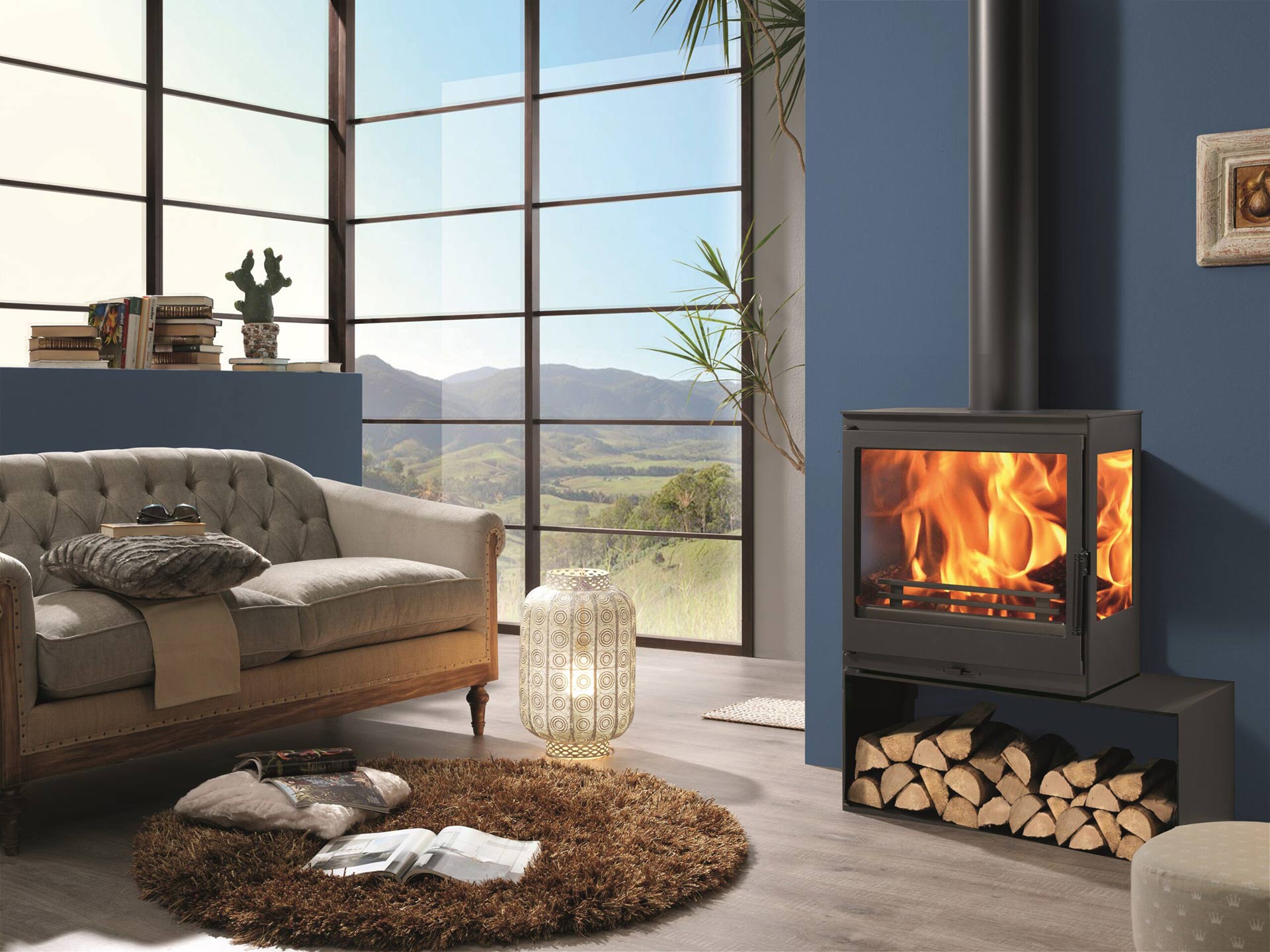 - Der Kaminofen Charme verfügt über drei große Sichtscheiben. Dadurch lässt sich das Flammenspiel auch von der Seite wunderbar beobachten. Der Ofen besticht durch sein zeitloses Design und fügt sich harmonisch in den Aufstellraum ein.
