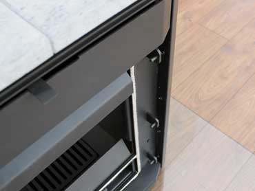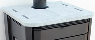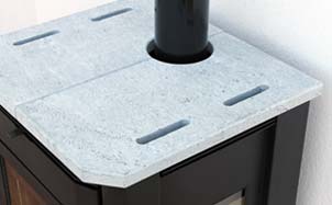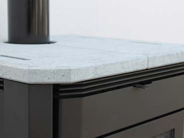 • Die Abdeckplatte aus Speckstein speichert Wärme und sorgt für ein besonders edles Erscheinungsbild.