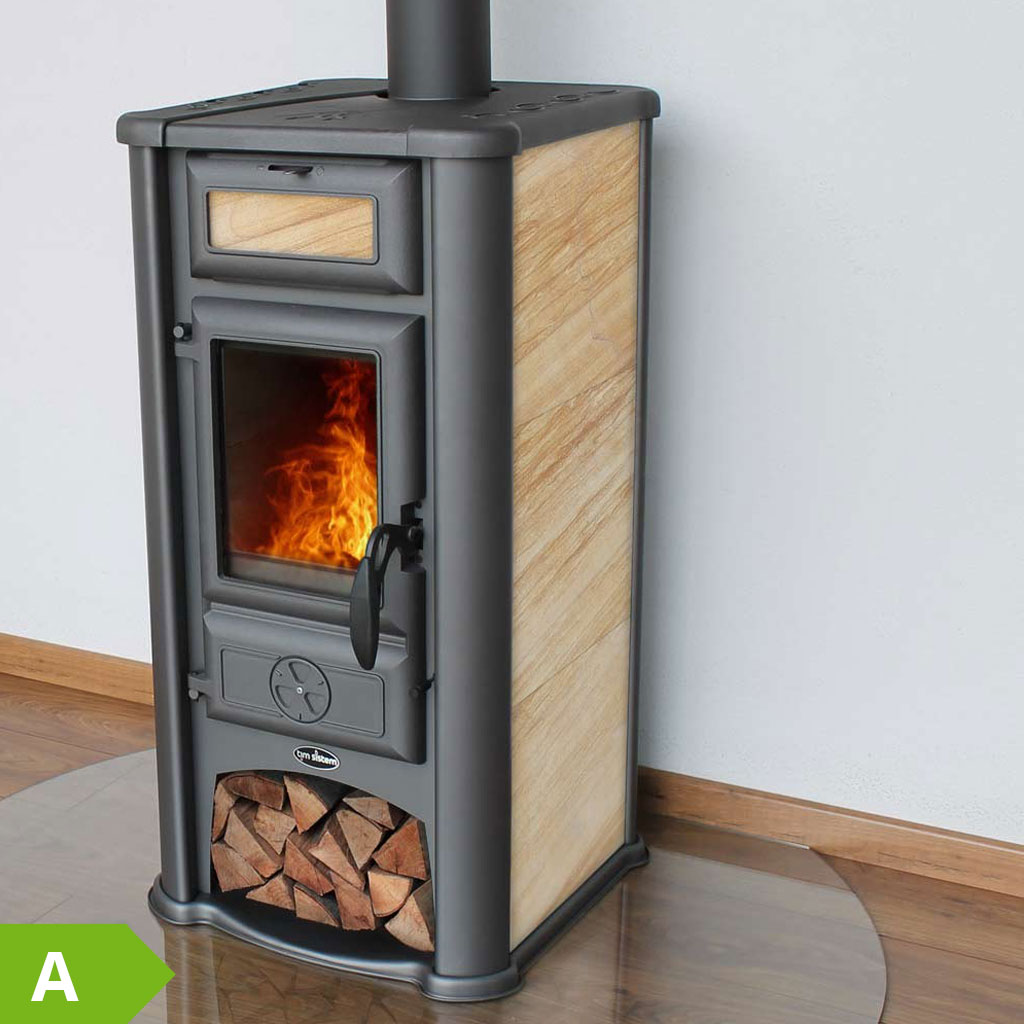 - Den August gibt es übrigens auch mit Specksteinverkleidung sowie farbenfrohen Keramikplatten.