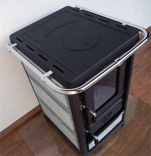 • auf Rollen gelagerter Vollauszug im unteren Teil des Specksteinofens