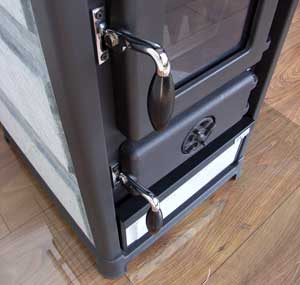 • unter der Feuerraumtür befindet sich der Hebel für den Rüttelrost